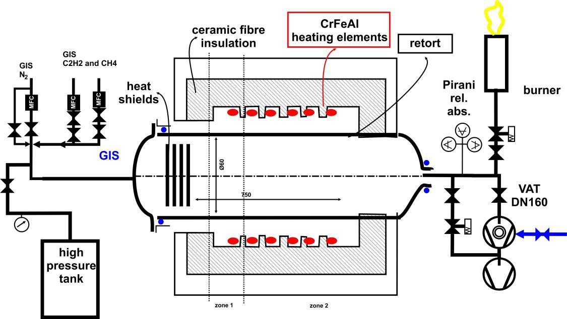 Die Herstellung eines Schmelztiegels aus pyrolytischem Graphit ist ein komplizierter Prozess, der als chemische Gasphasenabscheidung (CVD) bekannt ist und unter hoher Temperatur, niedrigem Druck und Stickstoffatmosphäre sorgfältig durchgeführt wird.Dieser Prozess beginnt mit der Spaltung von Kohlenwasserstoffen, was zur gerichteten Abscheidung von Kohlenstoffatomen auf einem Modell führt.Dieses Modell dient als Schablone, auf der die Kohlenstoffatome sorgfältig angeordnet werden und eine hoch geordnete Struktur bilden.